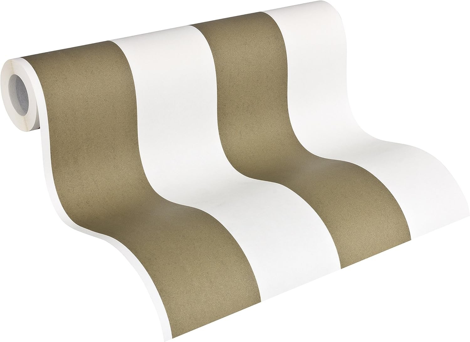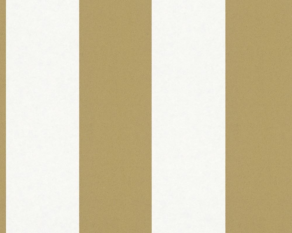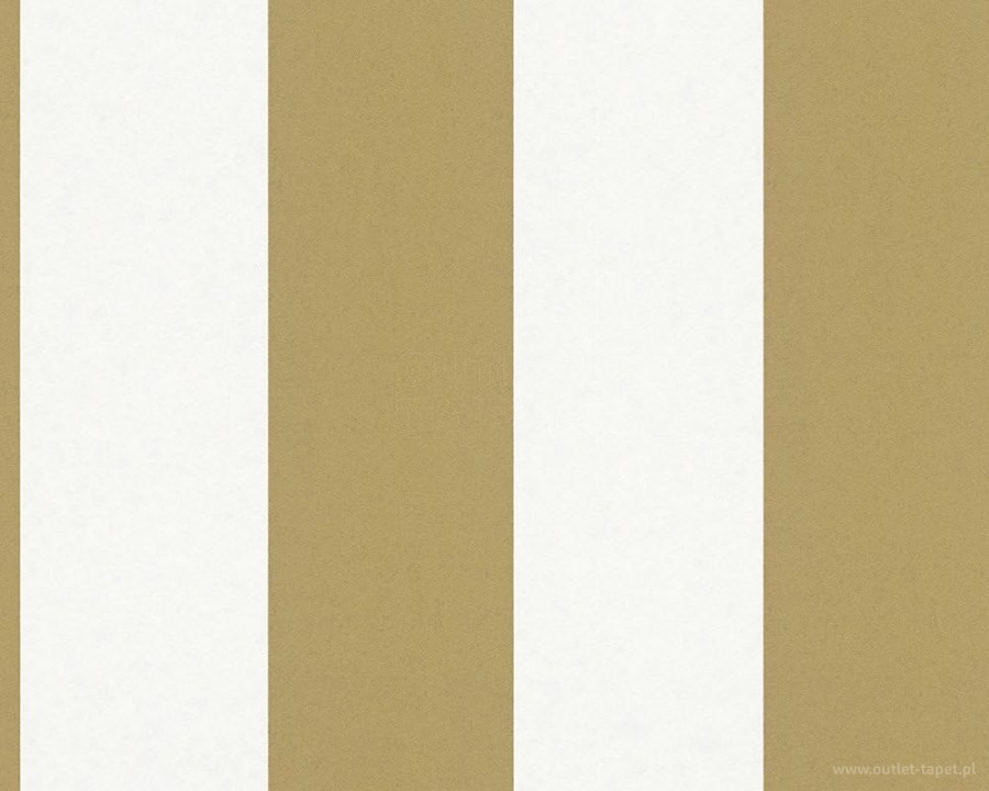 Ta elegancka tapeta ścienna prezentuje klasyczny wzór szerokich pionowych pasów, które naprzemiennie występują w odcieniach ciepłego beżu (karmelowy brąz) oraz jasnego kremu (złamana biel). Dzięki zastosowaniu prostych geometrycznych linii tapeta wprowadza do wnętrza wrażenie porządku, ładu oraz optycznie wydłuża i podwyższa pomieszczenie.