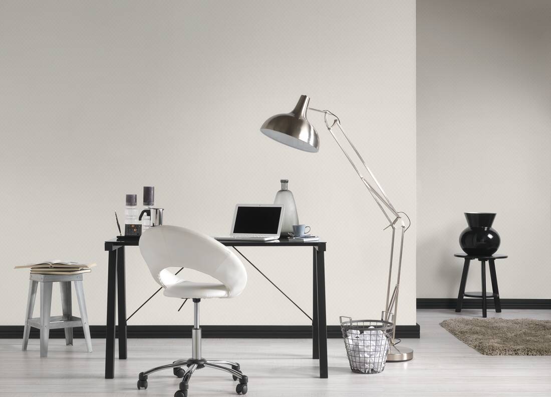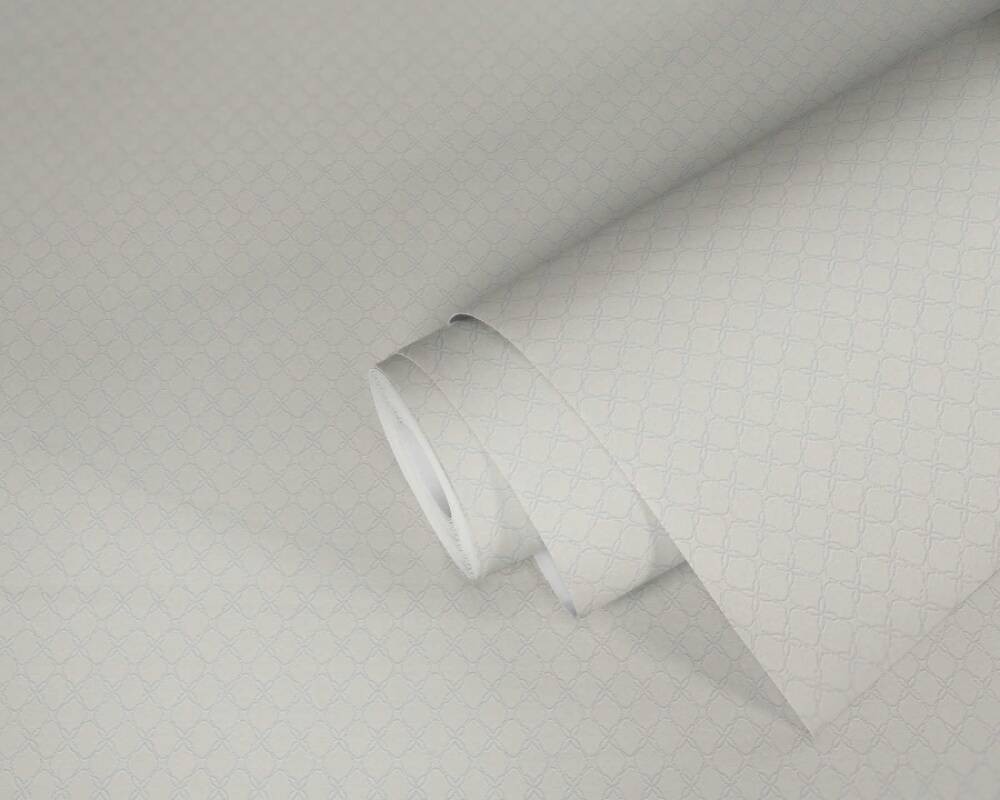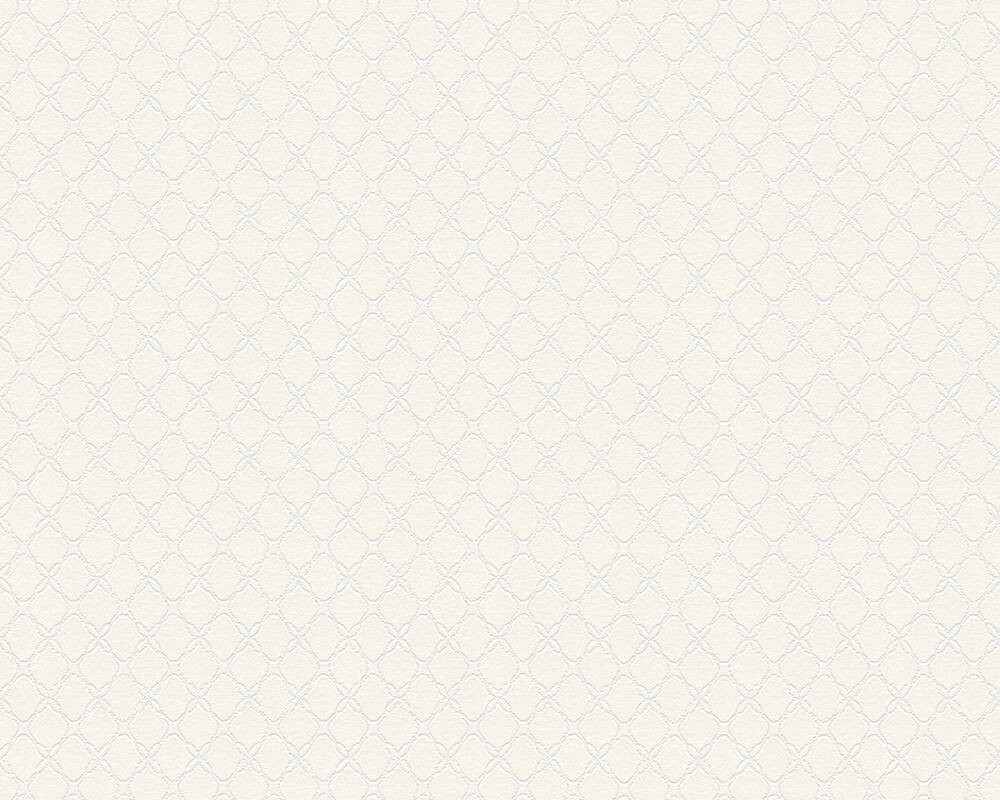 Tapeta przedstawia delikatny, powtarzalny wzór geometryczny w formie splecionych rombów lub ażurowej kratki, naniesiony na jasnobeżowe lub złamane białe tło. Subtelna struktura oraz stonowana kolorystyka sprawiają, że wzór jest niemal niewidoczny z daleka, ale z bliska dodaje wnętrzu elegancji i głębi. Całość utrzymana jest w stylu klasycznym z nutą nowoczesności, co czyni ją niezwykle uniwersalną.