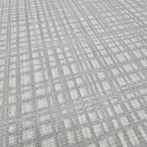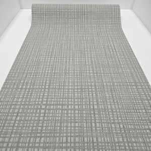 Ta tapeta to doskonały wybór dla miłośników nowoczesnego i minimalistycznego designu. Jej powierzchnia pokryta jest delikatnym geometrycznym wzorem przypominającym siatkę lub tkaninę – kratka utworzona z cienkich, nieregularnych linii tworzy subtelny efekt tekstury. Tapeta utrzymana jest w stonowanej, jasnoszarej kolorystyce z lekkim połyskiem, który dodaje jej elegancji i głębi.