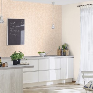 Tapeta utrzymana jest w jednolitym, ciepłym odcieniu beżu, który doskonale naśladuje wygląd tynkowanej ściany. Widoczne są delikatne wypukłości i smugi przypominające pociągnięcia pacy tynkarskiej – wzór nie jest nachalny, ale dodaje powierzchni głębi i naturalnego charakteru.