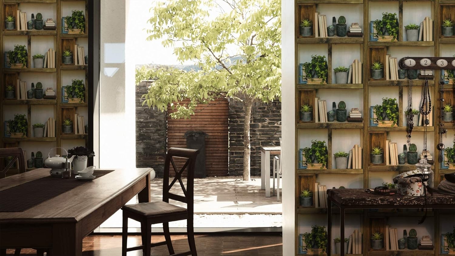 ✅ Gabinet, biblioteka, biuro – wprowadza motyw książek i roślin, który dodaje charakteru przestrzeni do pracy